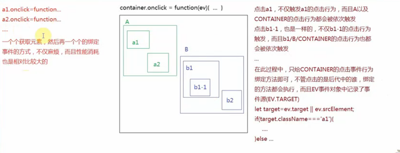 - DOM2事件绑定可以给当前元素的某一个行为绑定“多个不同的方法”