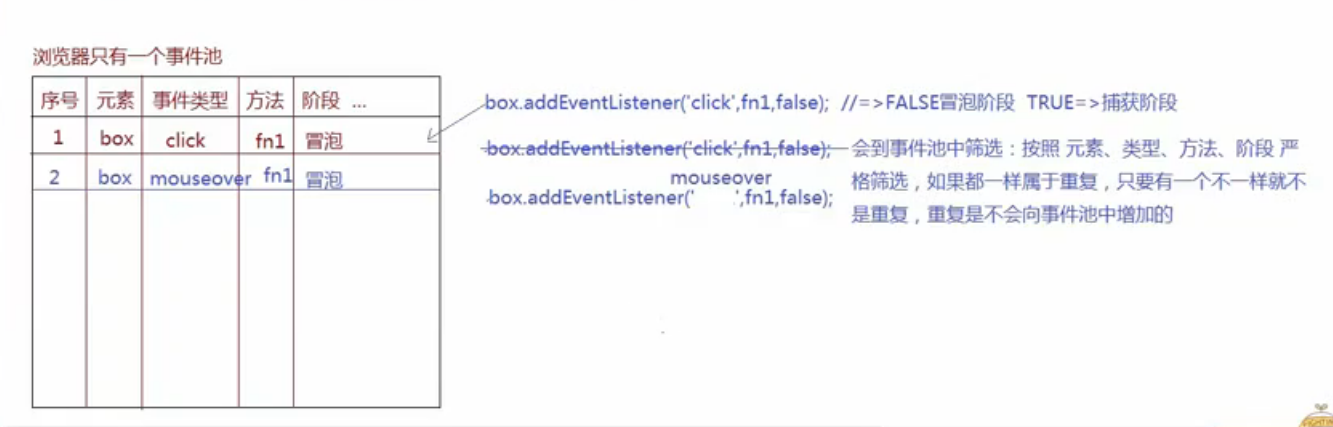 box.addEventListener('mouseenter',fn2); //增加到事件池当中的