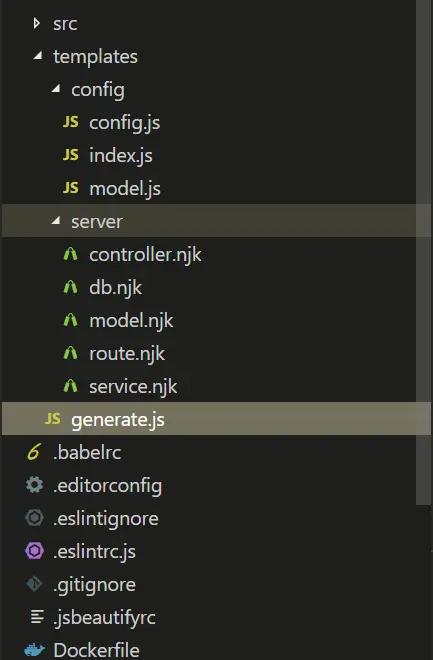 为了支持模板的开发,以及更灵活的配置,我将代码生成的逻辑全都放在模板目录中。