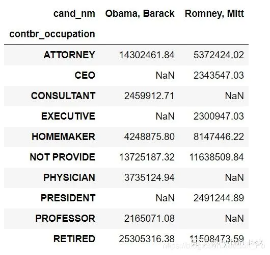 grouped_occupation = contb.groupby(['contbr_occupation'])['contb_receipt_amt'].sum()