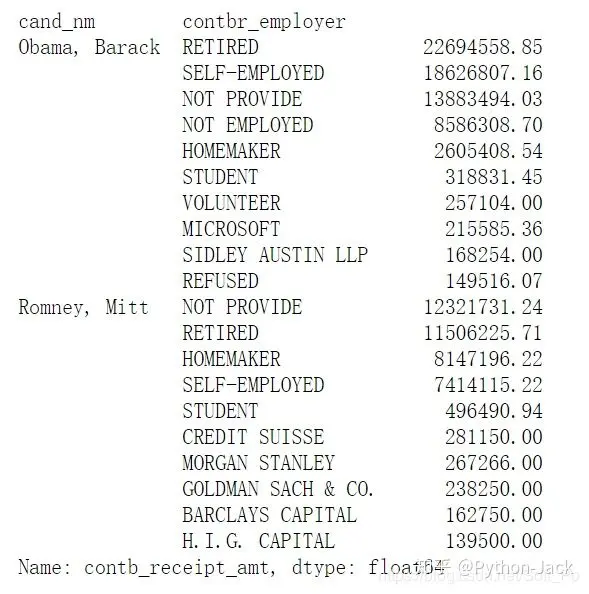 group_employer = contb.groupby(['contbr_employer'])['contb_receipt_amt'].sum()