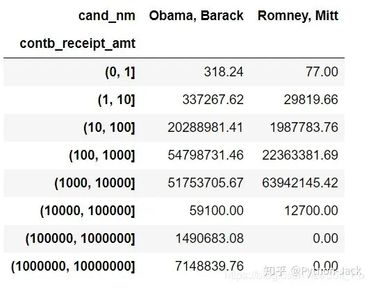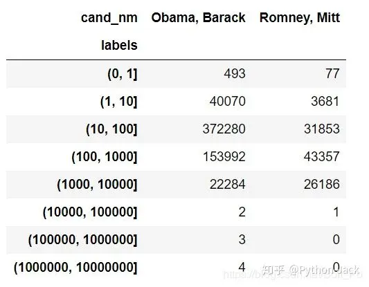 前面我们已经利用pd.cut()函数,根据出资额大小将数据离散化到多个面元中,接下来我们就要对每个离散化的面元进行分组分析首先统计各出资区间的赞助笔数,这里用到unstack(),stack()函数是堆叠,unstack()函数就是不要堆叠,即把多层索引变为表格数据