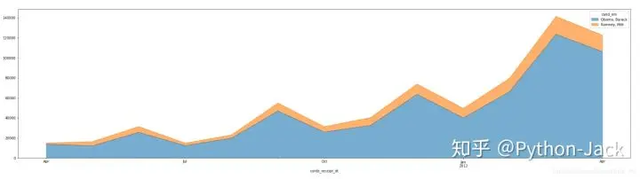 # 我们用面积图把11年4月-12年4月两位总统候选人接受的赞助笔数做个对比可以看出,