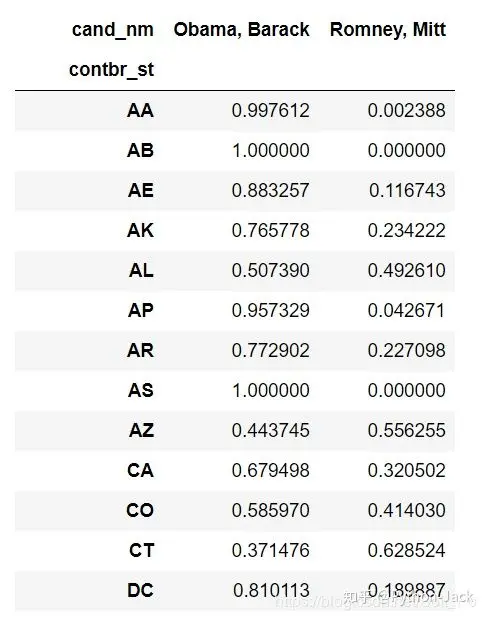 state_vs = contb_vs.groupby(['cand_nm','contbr_st'])['contb_receipt_amt'].sum().unstack(level = 0)
