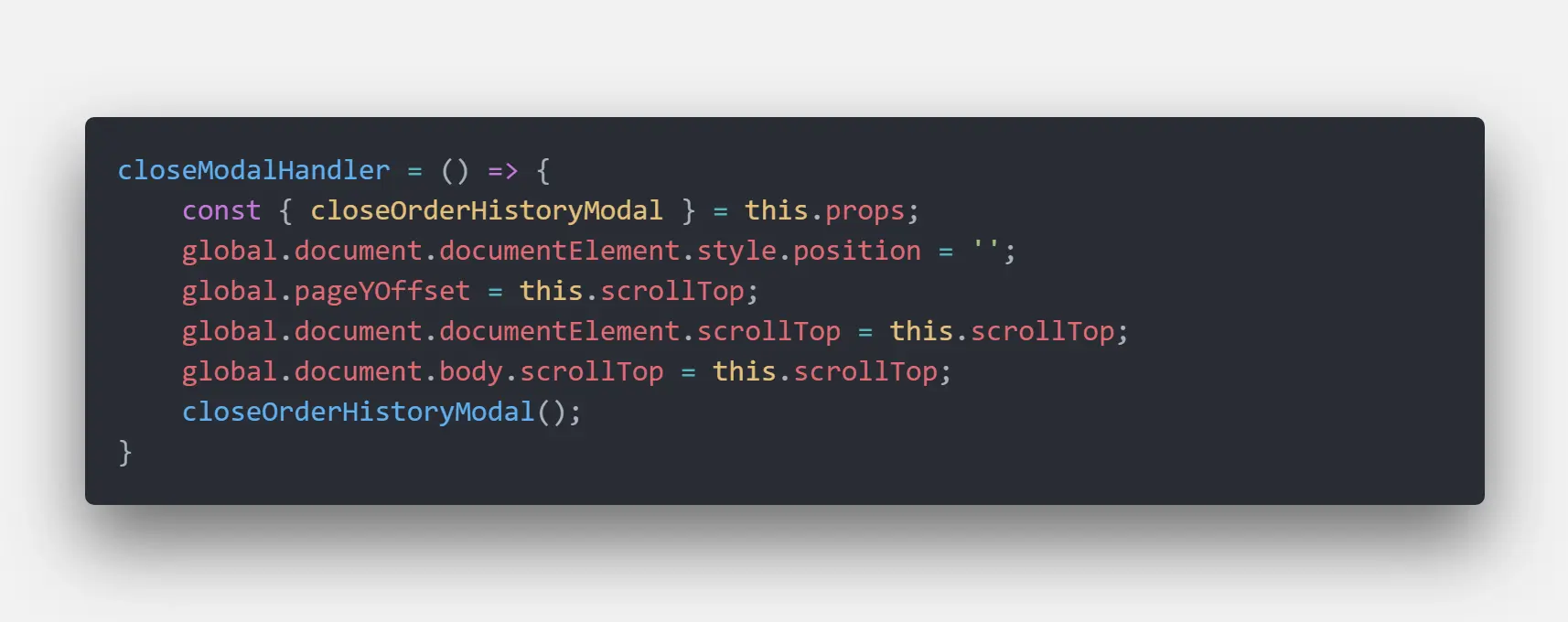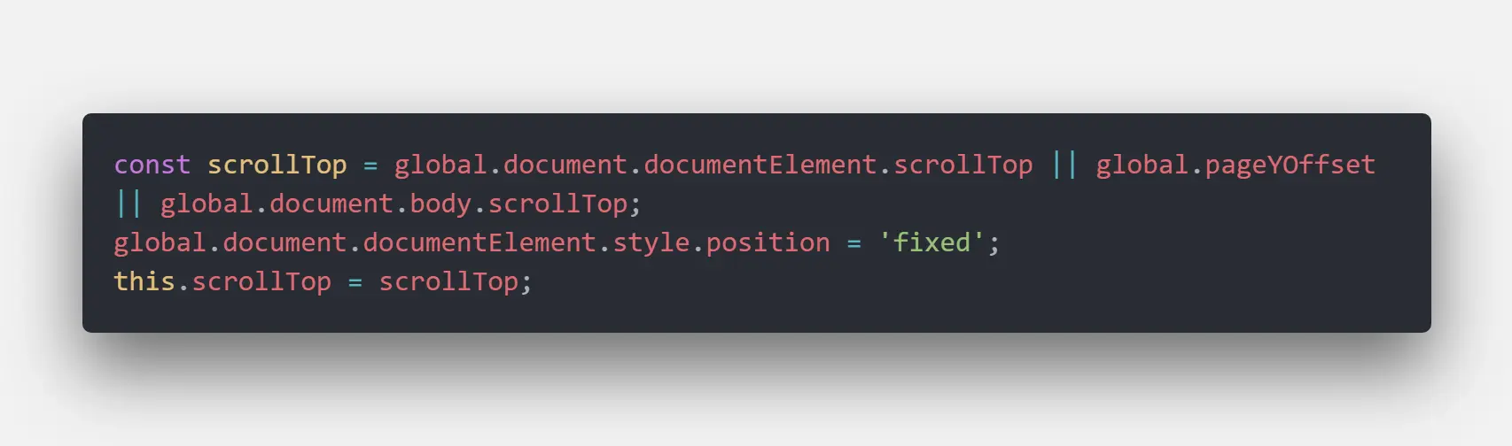 - 因为弹窗时设置position为fixed后,html页面的 scrollTop 值会变成0,会回到页面顶部,所以在关闭弹窗后,需要手动设置html页面的scrollTop 值,让其滚动到html页面原来的位置。