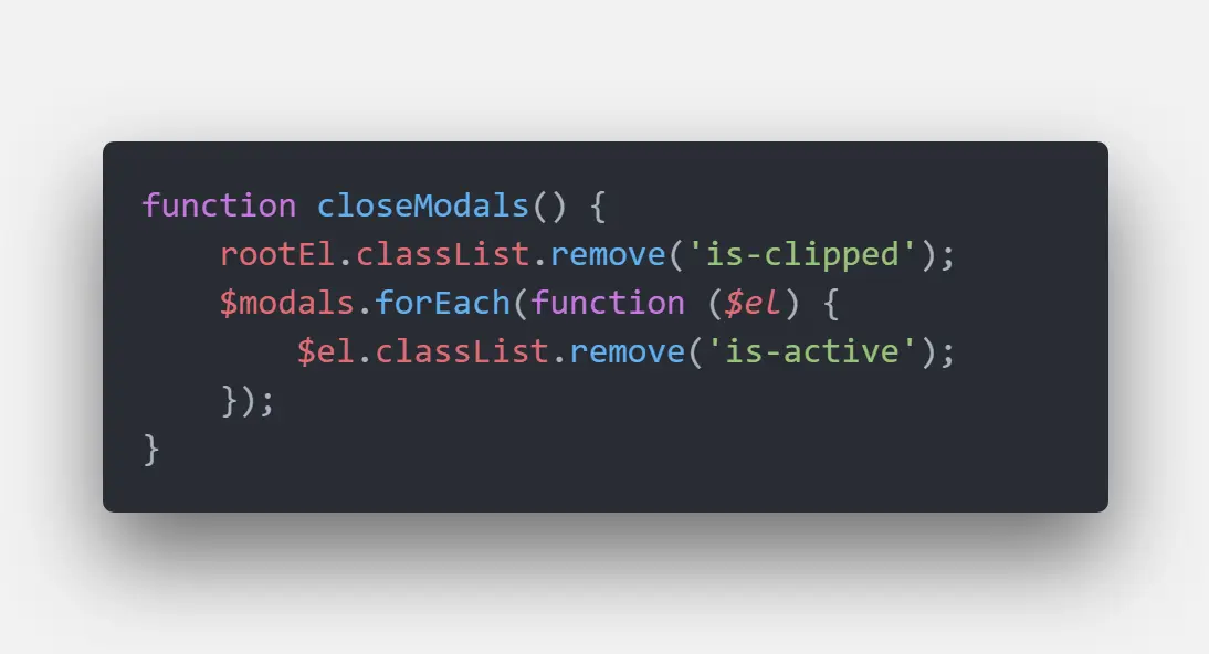 - 当弹窗关闭时,通过JS删除掉页面的 css 类:is-clipped