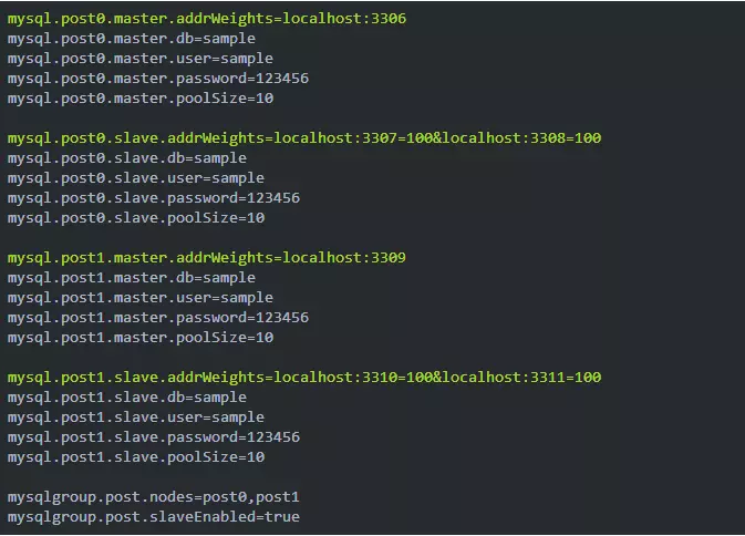 mysqlgroup 还有一个特殊的配置选项 slaveEnabled 来控制是否需要从库,从而关闭读写分离,默认是关闭的,这样就不会去构建从库实例相关对象。