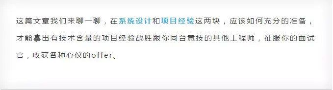 在解决了系统设计问题之后,任何一个公司,任何一个面试,都一定会涉及到你作为一个工程师最最核心的价值和能力,就是你的经验,具体来说就是你做过的项目。