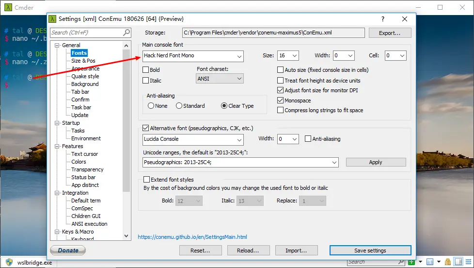 修改cmder字体为