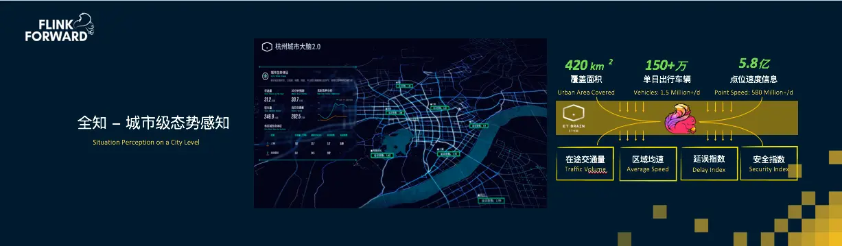 上图是2018年9月份正式公布的杭州城市大脑2.0,今天,在杭州420平方公里的土地上,有着近1300个的路口,无论是天上的摄像头,还是地下传感器的线圈,产生的数据都是通过实时流计算的方式收集到城市大脑当中,并进行实时的处理。某种程度上来说,我们把城市想象为一个生命体,通过每一个毛细血管(传感器)传递来的实时流数据,我们得以精准地了解这个智慧体的每一次脉搏,而这背后就是计算的威力。