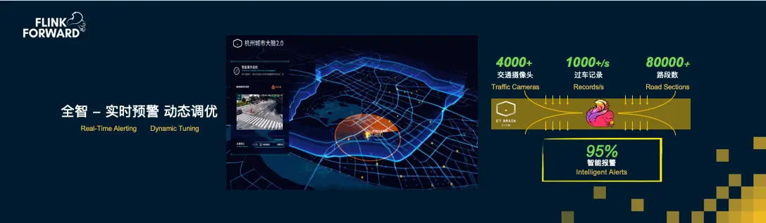 现在在杭州交警指挥中心所收到的报警当中,95%的来源并非人工,是城市大脑从海量流数据当中混合调度任务进行计算,并实时同步给交警指挥中心而来的。
