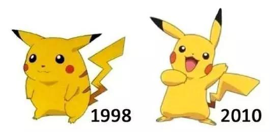 如果你看过最早的皮卡丘动画,你会发现当时的皮卡丘的形象比现在要圆润不少。后来皮卡丘之所以要进行减肥,据参与设定的杉森建先生称,是为了让它能够在动画里表现更多的姿态和动作,因此才不断进行修正让它变得更苗条。