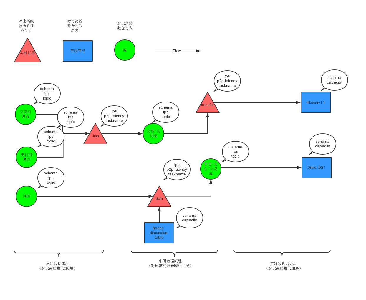 在 SQL 化实时任务初步完成后,流数据的复用变成了提高效率上 ROI 最高的措施,初步计划会着手开始实时数仓的建设,对于实时数仓的初步设计如下图: