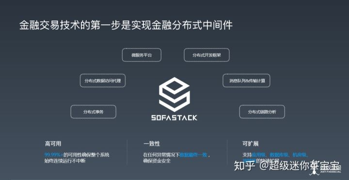背后到底怎么做的?有些技术能力就跟跳水项目的规定动作一样,一定要具备这些能力。比如怎么做分布式、微服务,消息队列的问题。具体到蚂蚁,更重要的是解决分布式事务的问题,怎么做高可用,怎么做一致性,数据不能有任何丢失,不能有任何偏差,到最后怎么能够完成金融级的分布式中间件,到现在为止,我们可以看到一点,在高可用,一致性方面我们已经做到在任何情况下的数据最终一致,保证每一笔支付扣款的资金安全。并且我们去年对整体内部的中间件进行了开源,SOFAStack 是我们这么多年沉淀在金融级的最佳实践,我们期待这些实践能够帮助到更多人,从最近开源的数据来看,有 23000 的 Star,100 多个同学来参与贡献,欢迎大家更多地去试用。