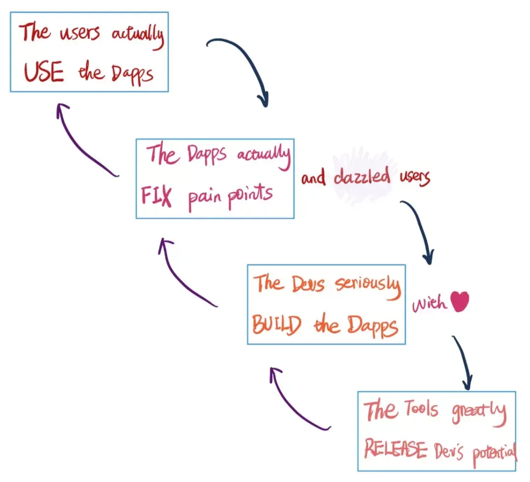 过去十年的铺垫,让区块链技术有了扎实的理论基础,Bitcoin, Ethereum 以及其后继者给我们展现了数据公开可验证且不可篡改的独特魅力和无穷潜力,于是一个又一个去中心化应用拔地而起,一条又一条有的没的的「公链」以迅雷不及掩耳之势凭空造出,比大自然还鬼斧神工 —— AI 工程师们自嘲自己是调参工程师,其实好多区块链工程师才是真正的调参工程师:把共识的参数调一调,一条链就出来圈钱了。然而过去的一年里我们看到,喧嚣散尽,留下的是一地鸡毛。区块链技术陷入了一个尴尬的境地:她活在舞台的中心,一颦一笑都牵动着媒体,可她衍生出来的产品却无人问津。我们知道,一个产品用户愿意使用,一定是产品抓住了用户的痛点或者痒点,让用户为之侧目;开发者要能开发出抓住用户的产品,他们自己必须对产品有深刻的理解,有趁手的工具来开发产品,并脚踏实地真心做事;而用对了工具,往往可以释放巨大的产能。iPhone 诞生前,人们对手机 app 的理解是 S60 或 Windows mobile 的样子,ruby on rails 起势前,web 开发是低效的,大军团作战的,因而往往中庸中透着丑陋。