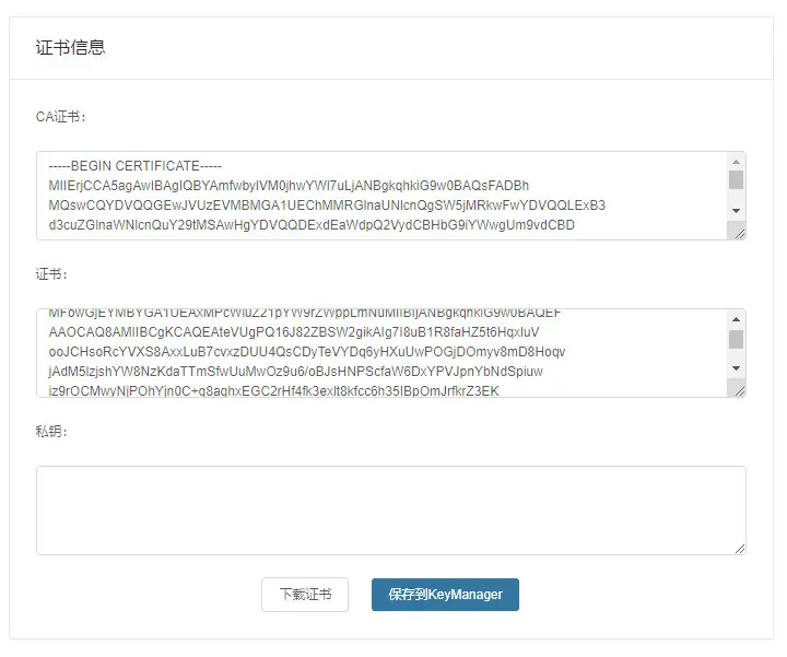 离线生成的时候,需要先安装 KeyManager,可以提供安全便捷的 SSL 证书申请和管理。下载地址如下: