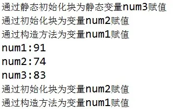 程序运行时静态初始化块最先被执行,然后执行普通初始化块,最后才执行构造方法。由于静态初始化块只在类加载时执行一次,所以当再次创建对象 hello2 时并未执行静态初始化块。