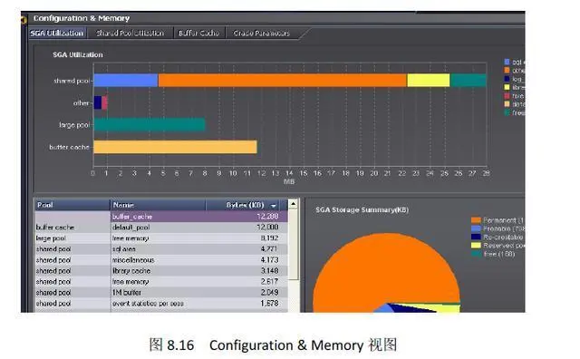 Configuration & Memory 视图主要显示SGA 的使用情况及参数配置情况,如图8.16 所示,可修改调整相应的参数。