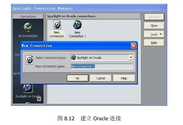 第一步要建立Connection,如图8.12 所示,这样才能够使用SpotLight 连接到要监测的数据库。