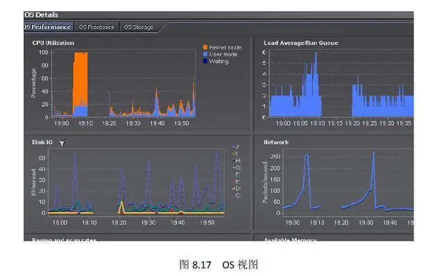 OS 视图主要展现的是Oracle 服务器的操作系统性能情况,包括磁盘利用率和进程情况等,如图8.17 所示。