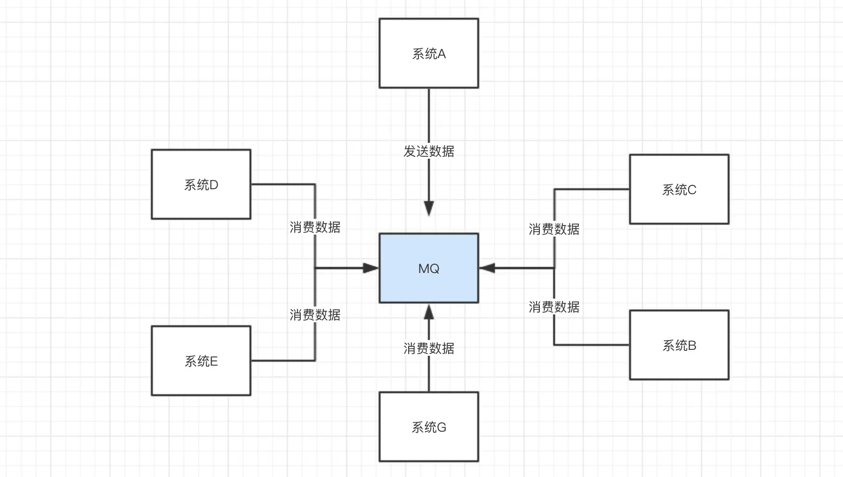 系统A 把数据发送到消息队列中,其他的系统,谁需要,自己去 消息队列 取就完了。