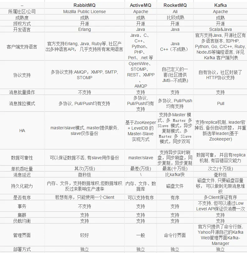 四种常用的消息队列 ActiveMQ、RabbitMQ、RocketMQ、Kafka
