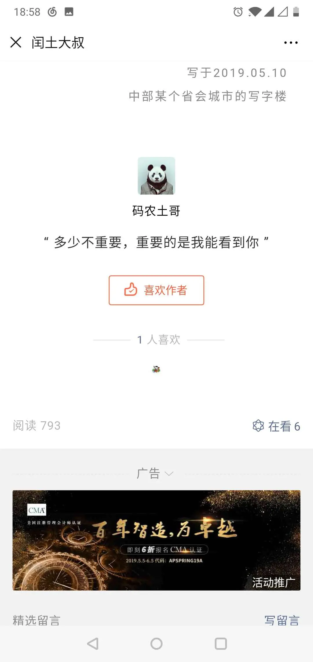 | jandou 3 小时 25 分钟前 i.loli.net/2019/05/11/… 他这个公众号的描述,我感觉都是模板... hahaha |