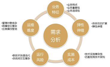 以业务连续性为根本,根据业务特点,从业务特征、弹性伸缩、实施成本、运行风险、运维难度的五个不同维度对应用项目进行详细的需求分析,对于不同维度评估、讨论、实验,从而形成一套或多套业务选型方案。并从打分结果,可以很直观的评估出系统的特点,以及在不同维度的分布式适合度。