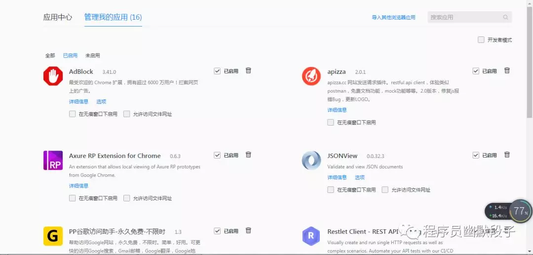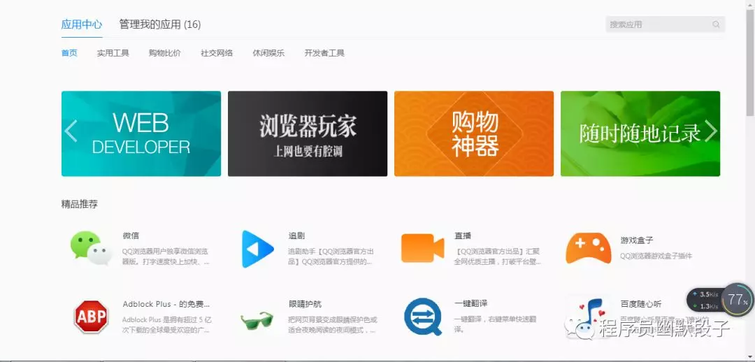 这个功能就是和谷歌浏览器一模一样的插件辅助功能。插件也很丰富,谷歌有的,QQ浏览器它也有。下面是我已经安装好的插件