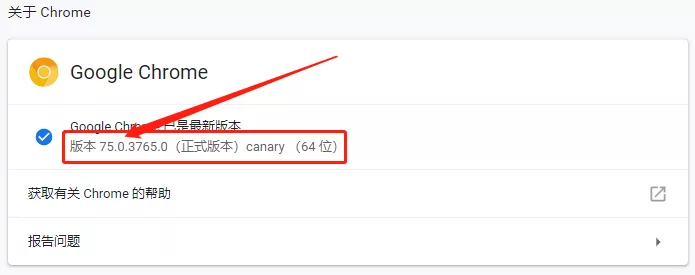 如下图,我的Chrome为金丝雀版本,版本号是 Chrome 75
