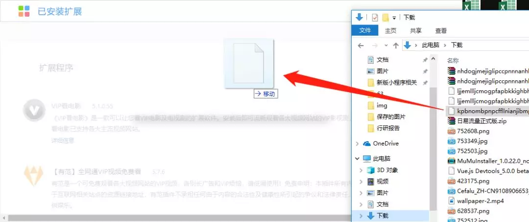 如下图,按住 xxxxxx.crx 拖动到chrome扩展中心