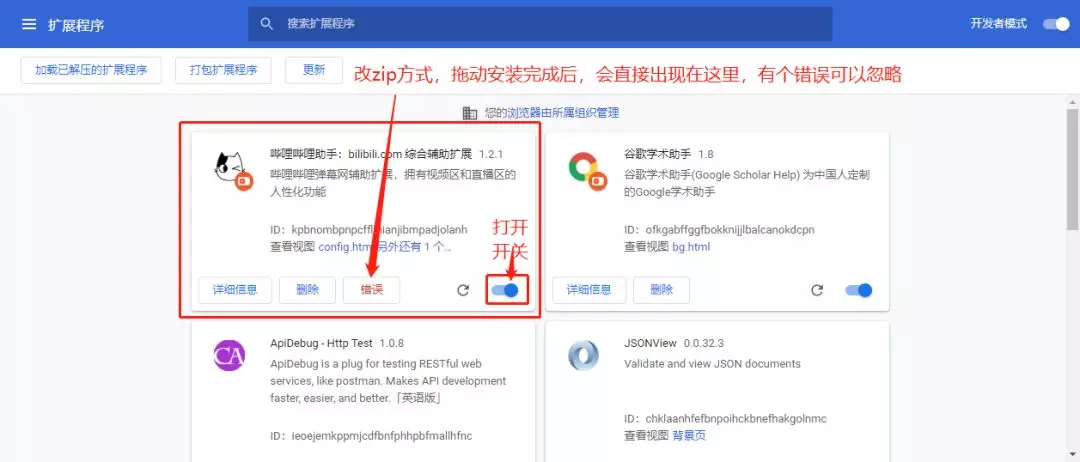 如果,你的浏览器是大于等于 Chrome 73 ,不支持拖动安装,只支持暴力安装,商店直装