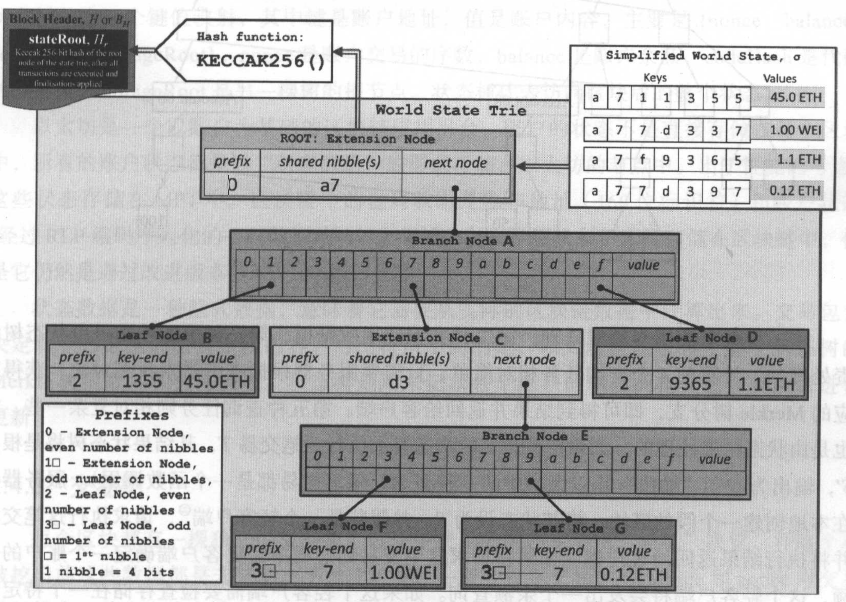 以太坊是一个以账户为基础的区块链应用平台,账户的状态不是直接存储在每个区块中,所有的账户状态都是以“状态数据”的形式存储在以太坊的节点中。