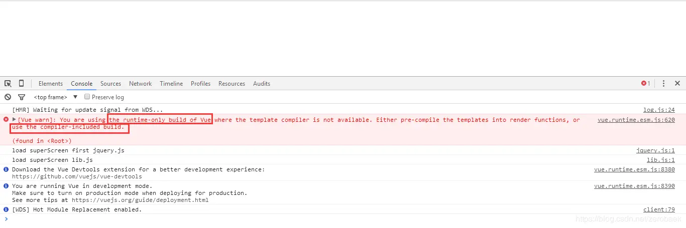 原因是在webpack中,使用import Vue from 'vue'导入的vue构造函数,功能不完整,只能提供runtime-only的方式。