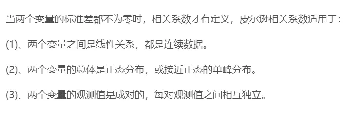 2. Pearson相关系数可用于衡量变量之间的线性相关程度,但有一定的使用条件: