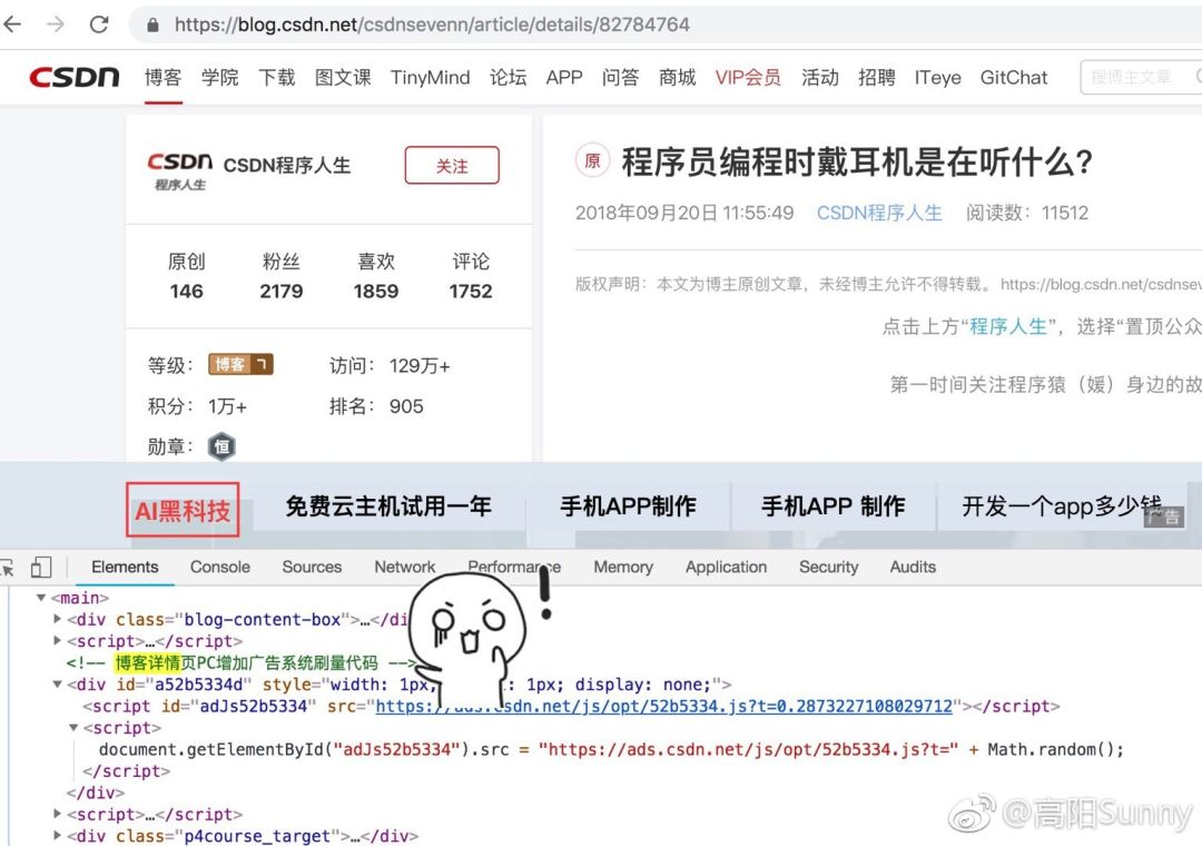 甚至欺骗客户——夸大网站流量,广告数据造假。 还记得去年程序员广告代码刷量的乌龙事件吗?“博客详情页PC增加广告系统刷量代码”这句话写在了代码注释里面上线了。原来客户的广告数据都是刷出来的?(心疼投放广告的客户)