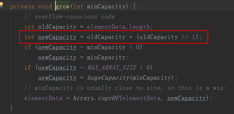 - ArrayList的扩容算法是 oldLength+oldLength>>1,也就是oldLength+oldLength/2