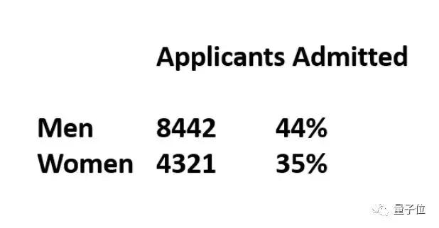 在这个具体的例子中,妇女大量申请入学率低的学校:像法律和医学。这些学校录取的学生不到10%。因此,接受的女性比例非常低。另一方面,男性往往更多地申请入学率高的学校:与工程学一样,入学率约为50%。因此,接受的男性比例非常高。