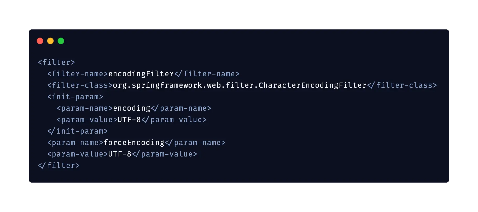 在常规的Spring应用程序中,充斥着大量的配置文件,我们需要手动去配置这些文件,如配置组件扫描、配置servlet、配置视图解析器,配置http编码等。这里以配置http编码为例,我们需要在web.xml文件中配置类似的一个filter: