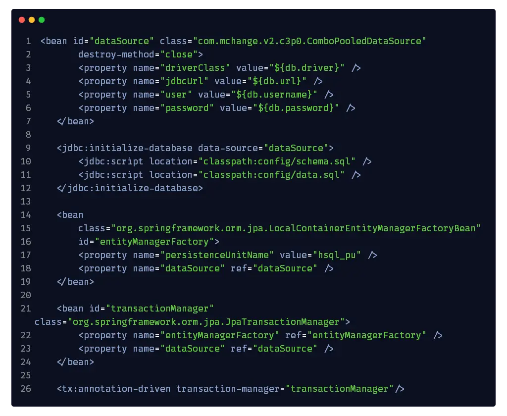 如果我们的项目中使用Hibernate/JPA时 ,我们还需要配置诸如数据源、Bean工厂和事务管理器等。