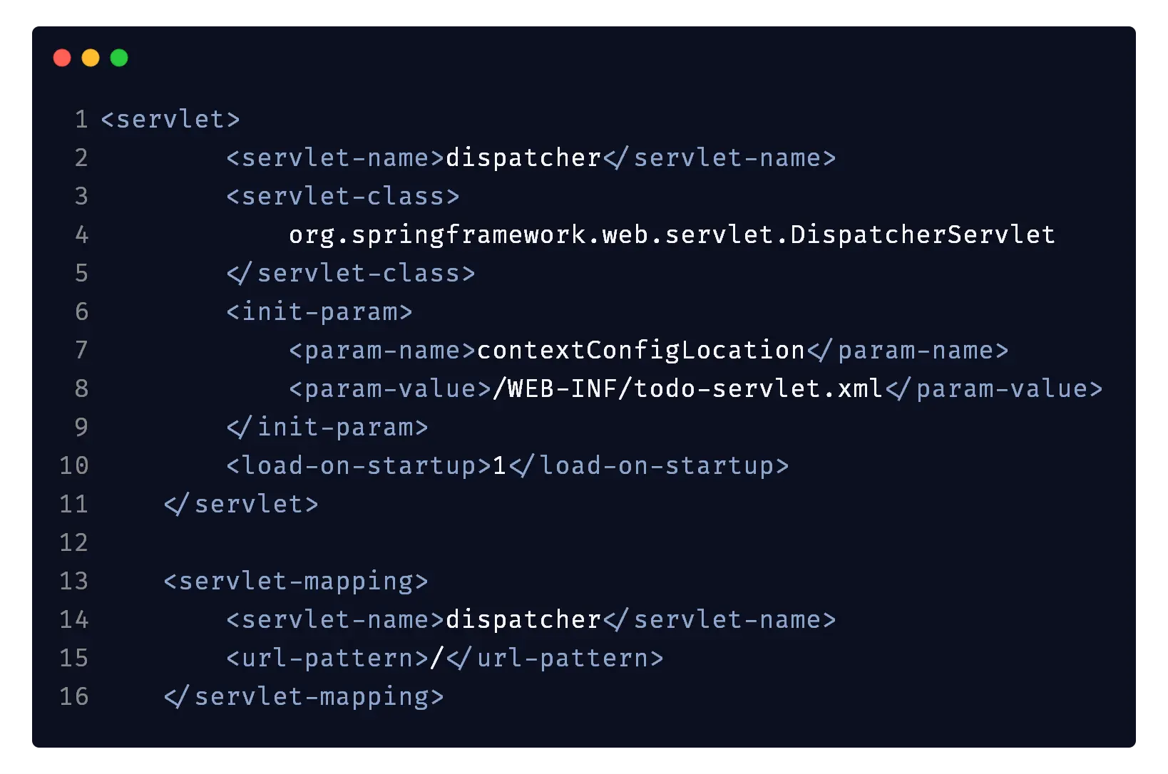 下面的这段代码向我们展示了配置一个Servlet的经典写法: