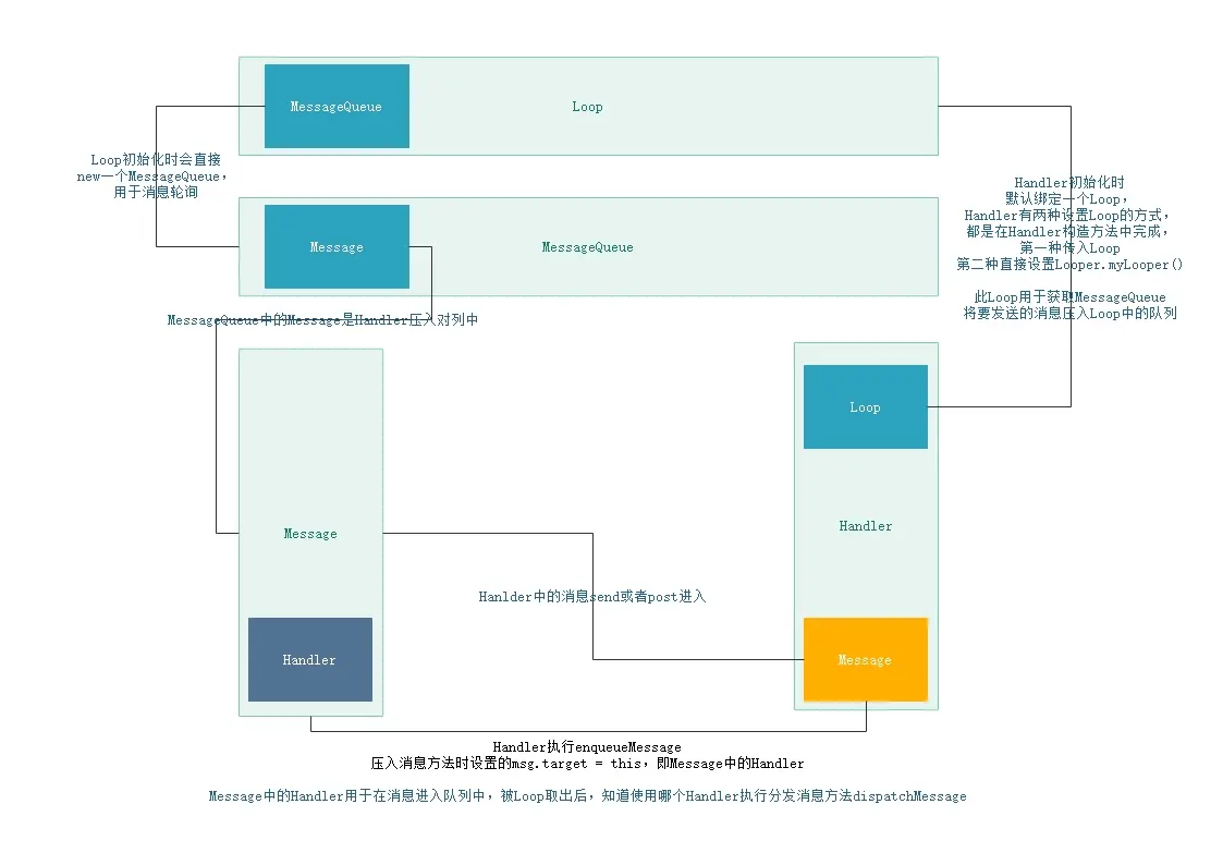 * 发送来的一些事件封装了Message并发送给主线程,主线程在无限循环中从队列里拿到这
