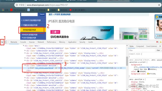注:从图中我们可以看到href中有页面文件的信息pro_child.aspx或者中文线性直流稳压电源。