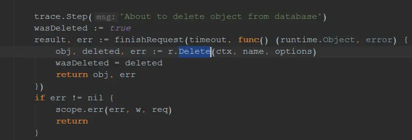 restfulDeleteResource继续封装handler,调用了DeleteResource方法。DeleteResource方法很长,但最终调用的还是DELETE方法,如下