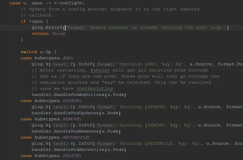 通过之前分析过kubelet的代码得知,kubelet一直在通过listwatch监听apiserver的变化