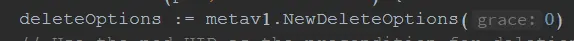 canBeDeleted方法返回true,kubelet调用apiserver的delete接口再次删除Pod。不过,与优雅删除不同的是,这次调用,多了一个deleteOptions字段