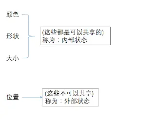 内部状态:可以共享,不会随环境改变而改变。