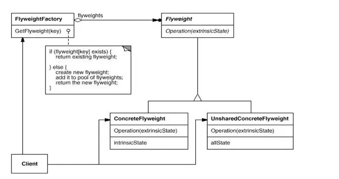 FlyWeight抽象享元类:通常是一个接口或抽象类,声明公共方法,这些方法可以向外界提供对象的内部状态,设置外部状态。