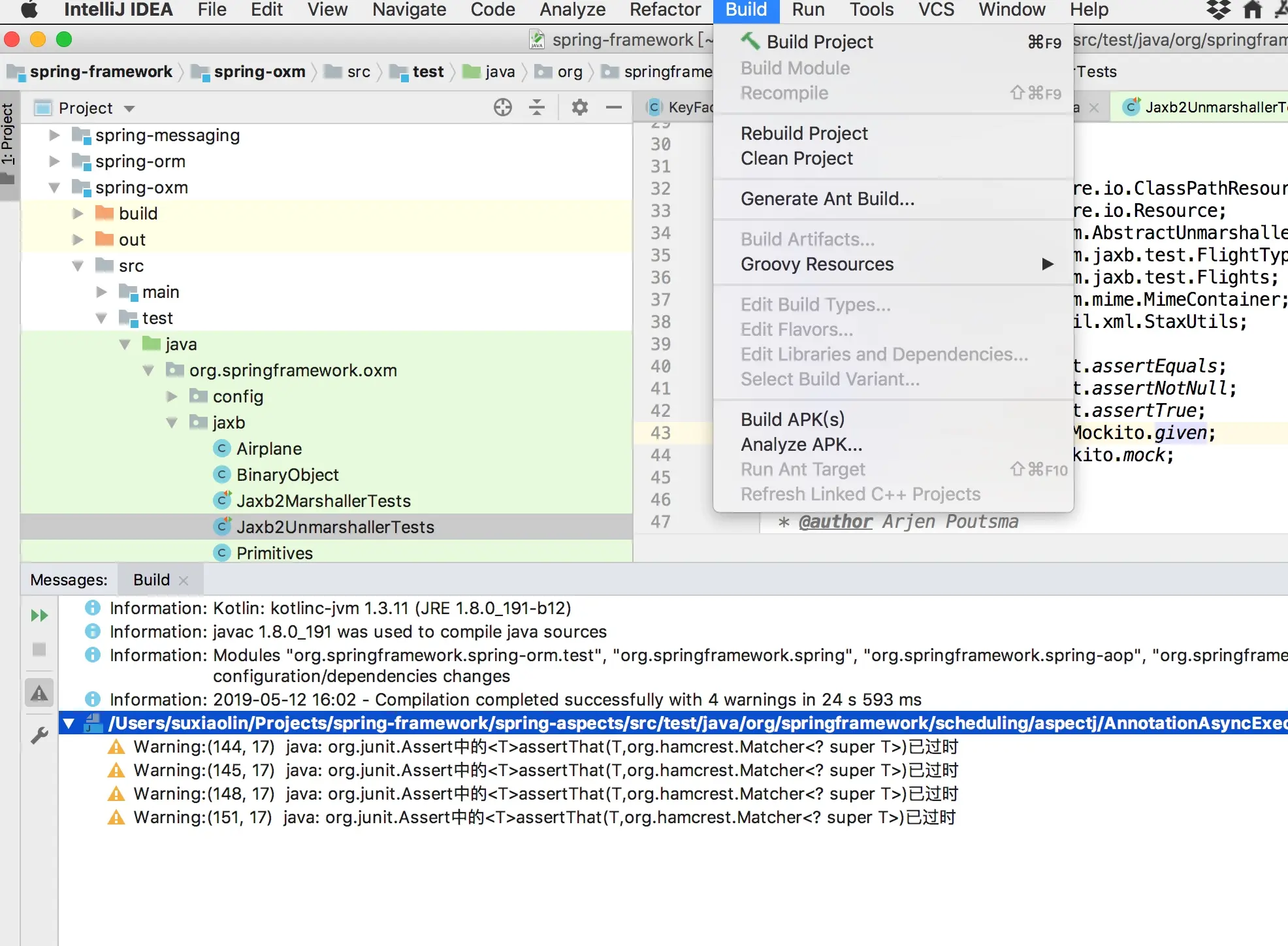 在idea中单击Build菜单,然后选择Build Project尝试编译整个java项目