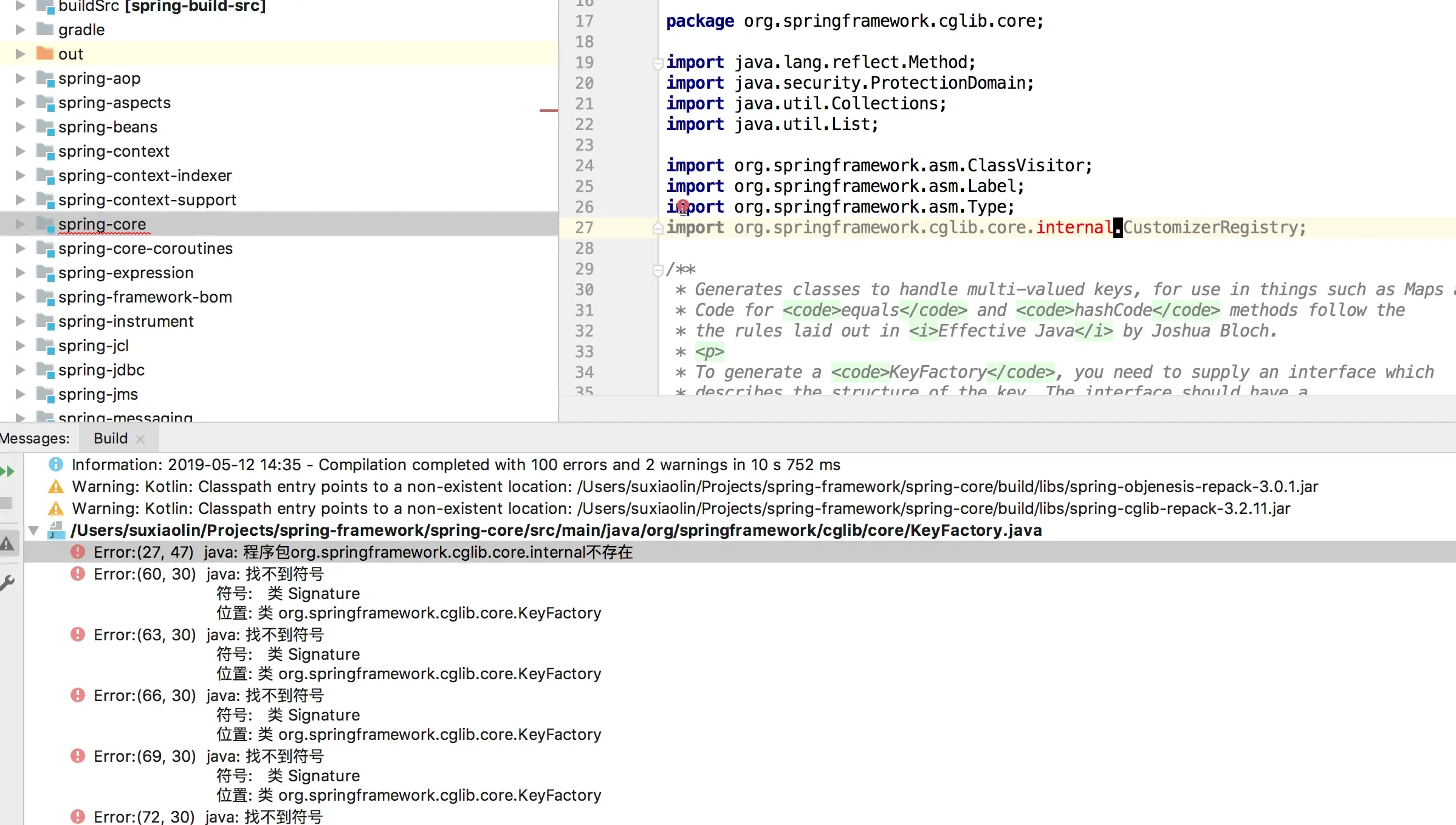 项目提示找不到org.springframework.cglib这个包
